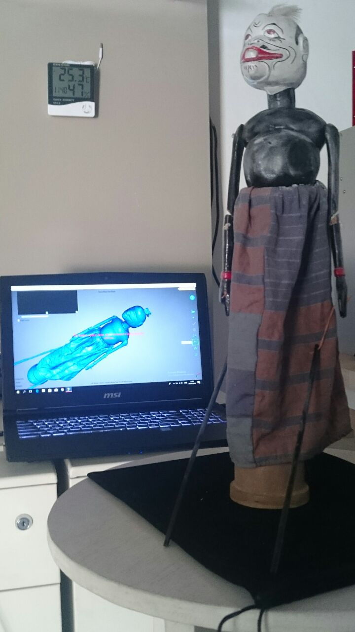 Penggunaan teknologi reverse engineering untuk pembuatan boneka wayang golek. Wayang golek dilakukan scanning 3D, sehingga mendapatkan pencitraan 3D, setelah itu dilakukan proses printing 3D menggunakan filament kayu. Hal ini menghemat waktu proses pembuatan wayang, dari sebelum-nya selama 2 minggu untuk pembuatan 1 wayang, menjadi maksimal 24 jam.
